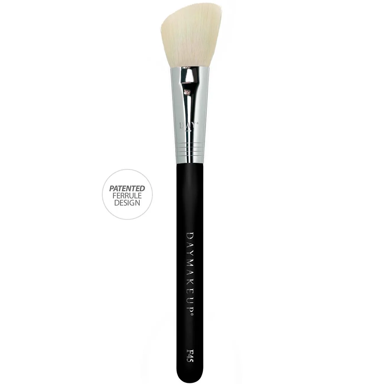 Pincel ideal para marcação de blush e marcação em pó. Cerdas sintéticas micronizadas DAYTECH Soft Fibers, cabo de madeira com ponteira em cobre prata.