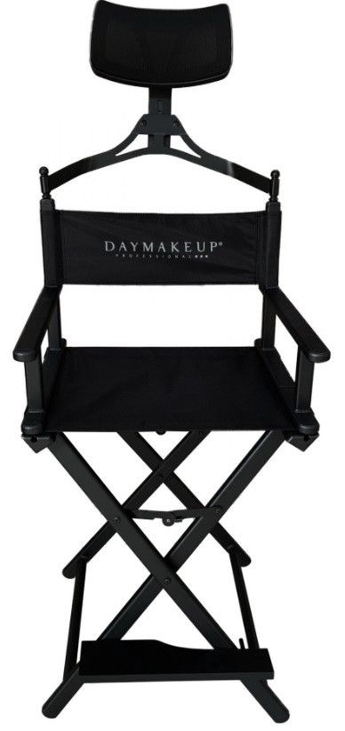 Cadeira Diretor Maquiador Daymakeup com 1,40 altura total, capacidade para 120 kgs. Material: alumínio super resistente e tecido nylon. Desenvolvida com encosto de cabeça ajustável.